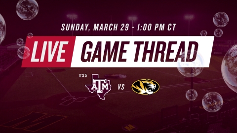 Michael Earley and the 25th-ranked Fightin' Texas Aggies go for a road series sweep on Sunday afternoon in Columbia as they take on the Mizzou Tigers at Taylor Stadium. Follow along as the TexAgs crew provides live updates of Sunday's series finale.