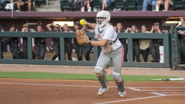 No. 5 Texas A&M made swift work of Sam Houston on Tuesday night as the Aggies run-ruled the Bearkats 10-0. Starting in the circle, Emily Leavitt was dominant in a one-hit performance as Mya Perez paced the offense with six RBIs.