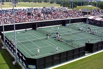 I'm an Architecture student at Cal Poly. For our class project this quarter we are doing a theoretical redesign the Cal Poly Tennis Complex. In my research I have found that Texas A&M appear to have an amazing facility with a unique design. However I have only been able to find a handful of photos of the complex. I was wondering if anybody could send me some more detailed photos or give be a basic description of the design of the facility. Particularly what is between the courts, under the stands. and what the cross section of the raised seats is like. It appears to me that there is two rows of chair back seats that step down toward the courts, then bleaches that face one side of seats and standing room for the other side. I would also appreciate photos of the entrance to the facility and info about scoreboard location as well as any opinions anybody have about this facility.