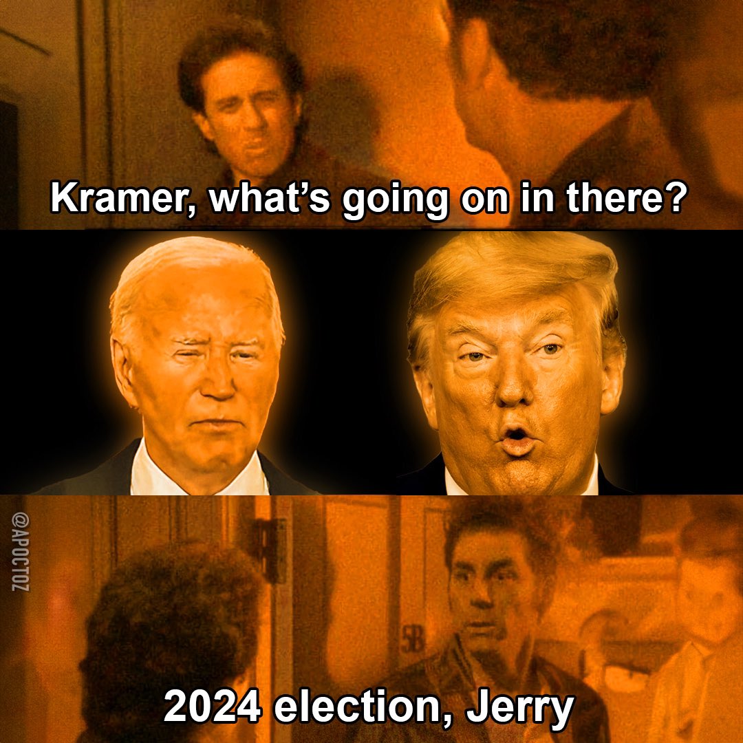 It looks like someone heard about the first Nixon-Kennedy debate from 1960. Nixon wouldn't wear makeup and one of the most noticeable visuals was the stubble of his beard. Everyone commented how young and "fresh" Kennedy looked, how "tired" Nixon looked and the content of the debate was not as impactful as it should have been. Perhaps that was a precursor to today's style-over-substance outlook on politics.nortex97 said:— Mostly Peaceful Memes (@MostlyPeacefull) July 2, 2024