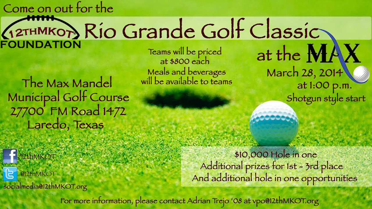 Coach Jackie Sherrill and the 12thMKOT Foundation is hosting the Rio Grande Golf Classic in Laredo, Texas this year. The event will be held on March 28, 2014, starting at 1:00pm at the Max. If you are interested in registering a team, they would love to have you come out and join them and their special guests. If you can't make it to the event, but would like to be a sponsor, there are opportunities for that as well.