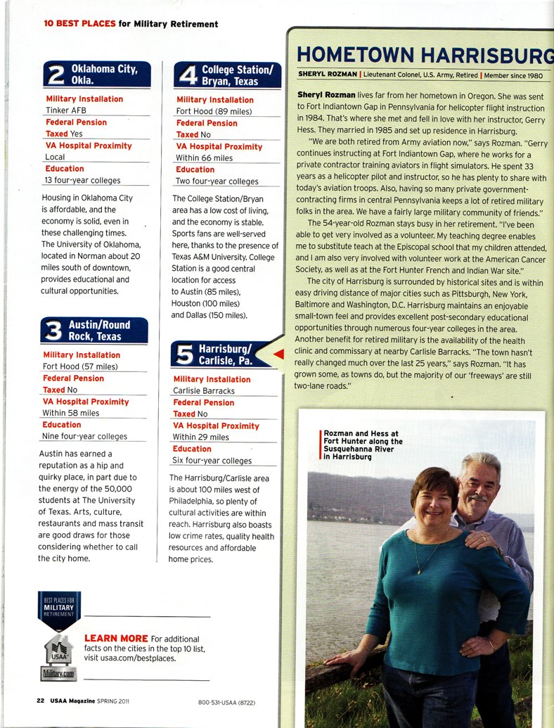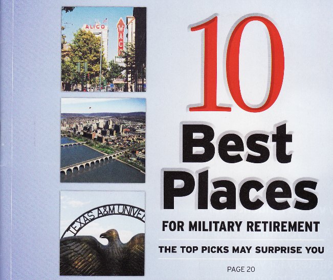 I've lived in 4 of the top ten and traveled to 8 of the top 10. Round Rock looks better and better all the time. Since this list is for Military Retirement, I guess Round Rock could stay on the list even though Austin's new Light Rail doesn't go there.