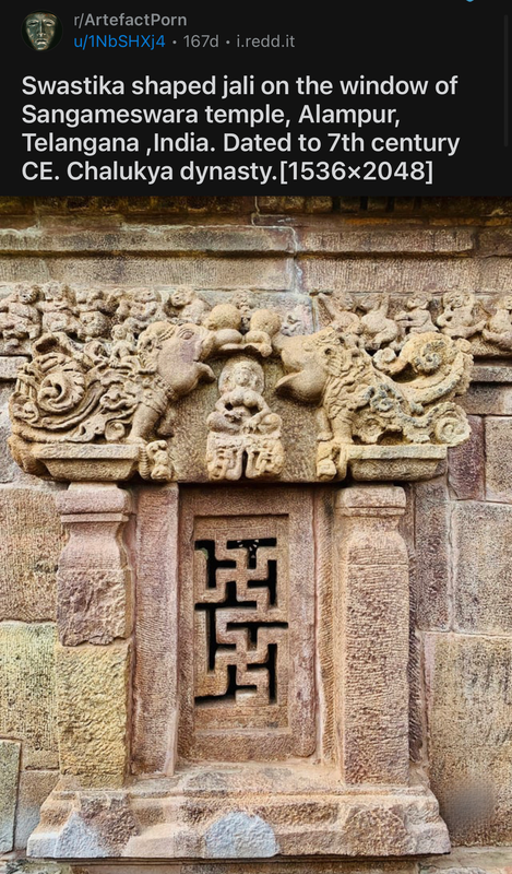 As above, it was a very common symbol worldwide, before Hitler ruined it. An American fighter squadron in WWI had a Swastika as their emblem. There's a 1920s hotel in Mountainaire, NM with Swastikas all over it.