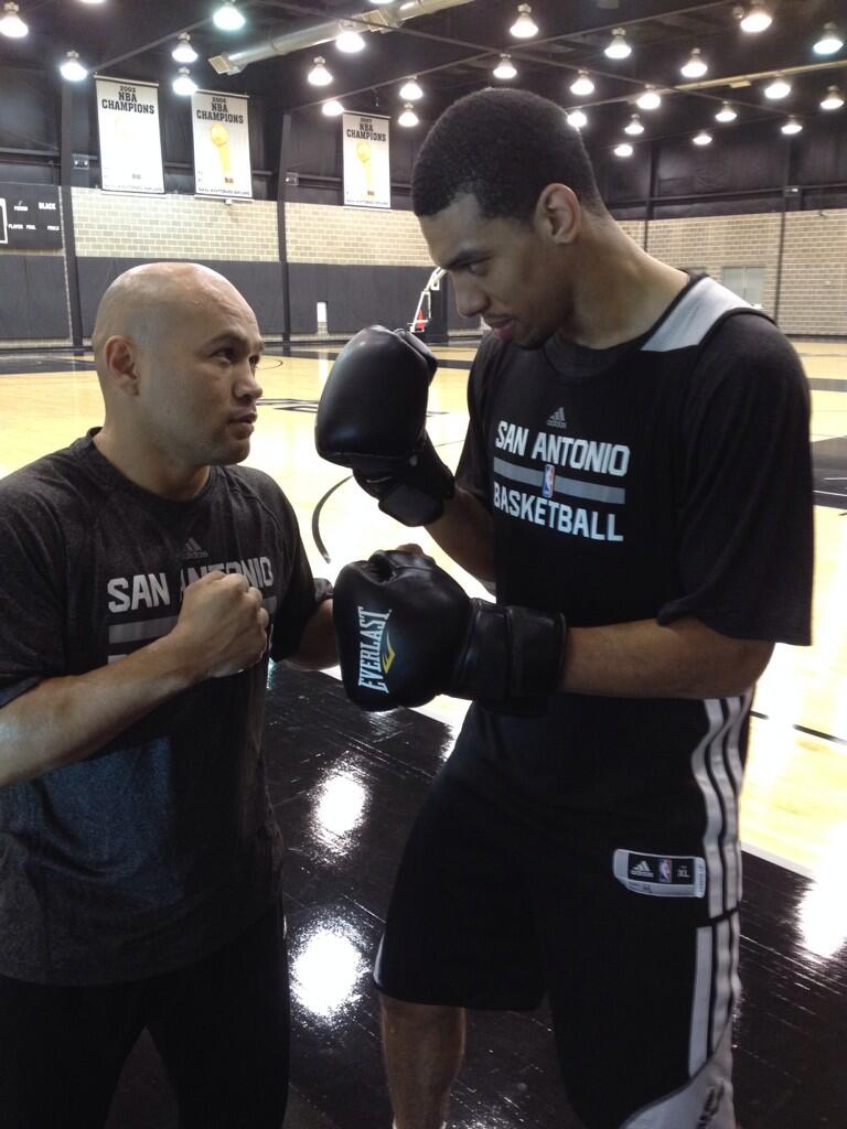 Sam Young was apparently also the star of the Spurs' obstacle course run this moring. Danny Green called him "an acrobat."
