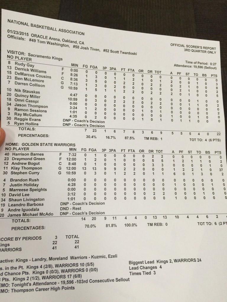 The quarter started out with good shooting, but as it progressed, Klay started picking shots like even he was wondering if he could miss and wanted to test it.