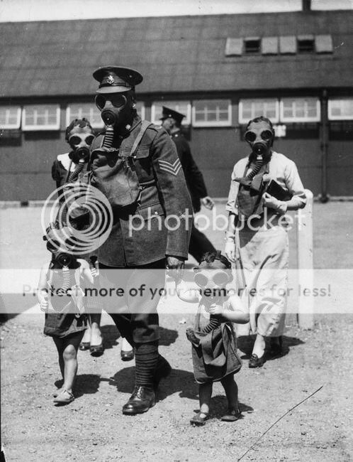 Early WWII. Brits worried that Hitler would use gas, as in WWI. I think that fear abated pretty quickly.